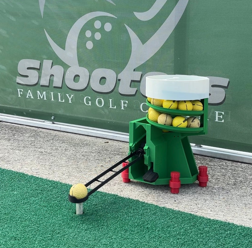 The funnel and adjustable feet risers are optional add-ons, not included with the base model. The funnel helps you pour balls in without spills, and the risers let you match any tee height for your perfect setup!